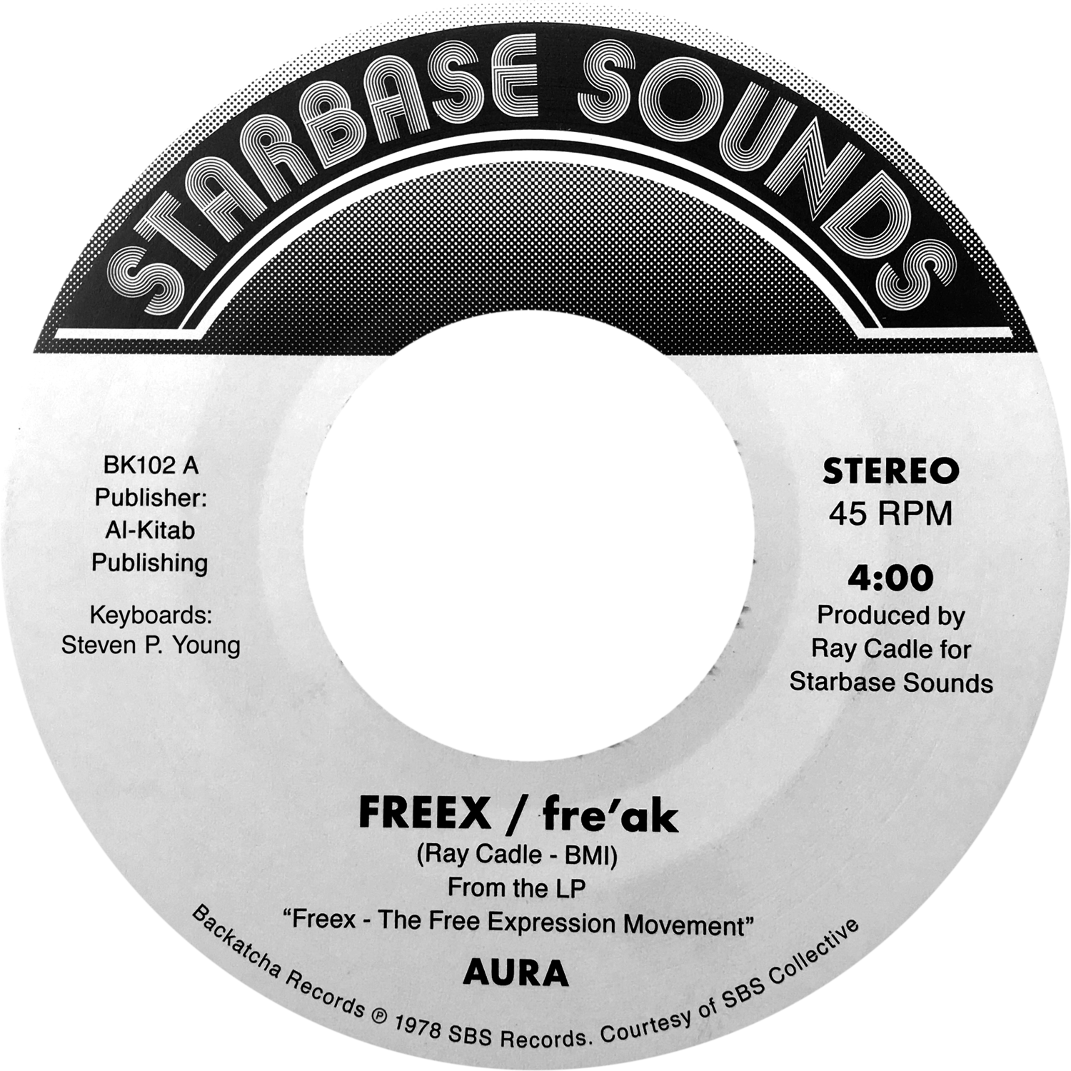 70年代後半から80年代初頭にかけて数枚作品を残したNYのディスコレーベルStarbase SoundsのレコードがBacktachaにより一挙再発。そのレーベルのスタジオ・バンドAuraが残した激レア盤が12"と7"にて再発。こちらは78年にリリースされたレア7"のストレートリイシュー。Aサイドには疾走感溢れるグルーヴィーなディスコブギーの"Freex"、Bサイドには12"とは異なる"Sunshie Love"を収録。
