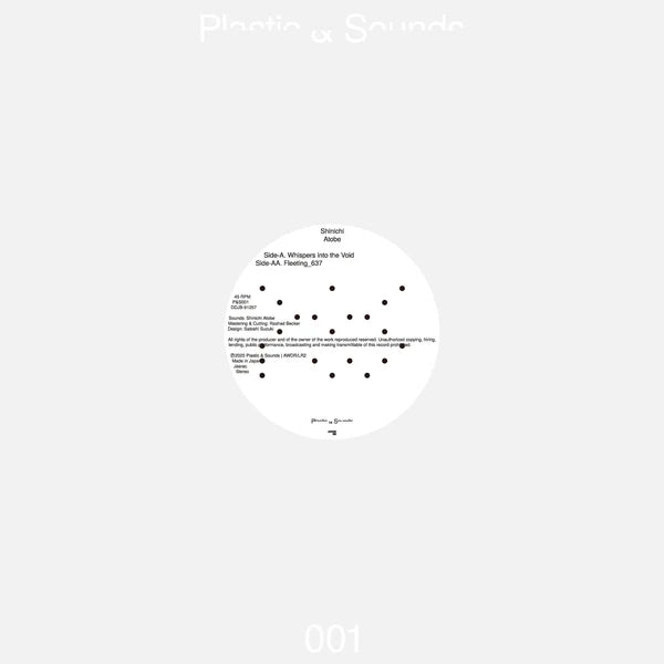 日本の電子音楽家Shinichi Atobeが自身のプライベート・レーベルPlastic & Soundsをスタート。その第一弾となる自身の新作2曲を収録する12"。ミニマルなシンセとリズムから、流麗なピアノのリフレインの導入と共に徐々に禁欲的に展開する"Whispers into the Void"と、BPM125前後のフロアライクな没入ミニマル・ダブテクノ"Fleeting_637"。マスタリング/レコード・カッティングはRashad Beckerが担当。45回転仕様限定プレス。