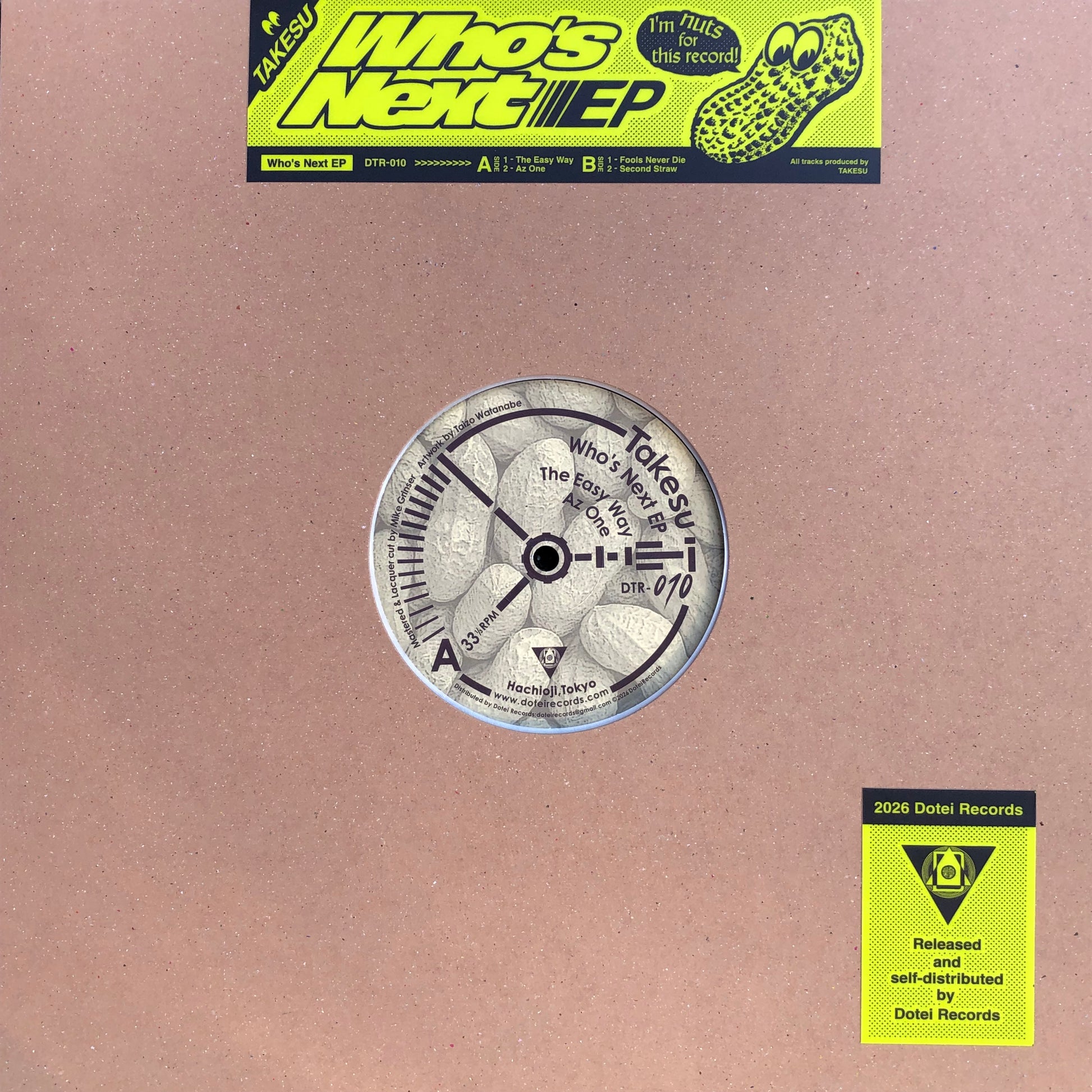 Who’s Next EP は、DTR-003 でデビュー作Tales Of King Spider EP をリリースした千葉を拠点 とするDJ/トラックメーカーTakesu のセカンドEP である。前作から約4 年が経ち、その 間に父になるという人生の節目を迎えながらも、本作のタイトルとなった地元の内房エリ アで開催しているパーティーWho's Next や、同じく主催のイベントHomework を中心にDJ として活動。同時にまだ息子のおもちゃによる侵食を辛うじて免れている自室で日々トラ ック制作を続けていた。レーベルとしても10 作目という節目となるリリースで、あの頃は お互い初めてで手探りだったレコード制作のプロセスが、既に手慣れたものになっている ことに時の流れを感じた。それはまるで、高校の頃付き合っていた彼女と、20 代後半にな ってよりを戻したような、時間という溶媒に、空虚と成熟を放り込み、ブイヤベースを作 るような体験であった。どこか懐かしくもあり、しかし確実に新しい味がした。まだ同じ ことで盛り上がれる俺たちと、もう同じことでは満足できない俺たちがそこにはいた。三 友の鳥は、千葉の空を高く飛びあがったかと思うと、やがてまた雲の中へ消えていったの だった。この道は、ドコへ。