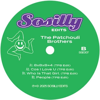 人気エディット・レーベルSosilly Editsに、G.A.M.M.やTugboat Edits、Razor-N-Tapeほかディスコ/エディット界隈を総ナメにするカナダのユニットThe Patchouli Brothersが登場。Stevie Wonder"As"のSister Sledgeカヴァー(A1)、Thelma Houston"Don't Know Why I Love You"(A2)、Andrea True Connectionの"What's Your Name What's Your Number"(B1)、Archie Bellの"Don't Wait For the World"(B2)と、クラシックなディスコ/ソウル・ネタをチョイス。(viceman)
